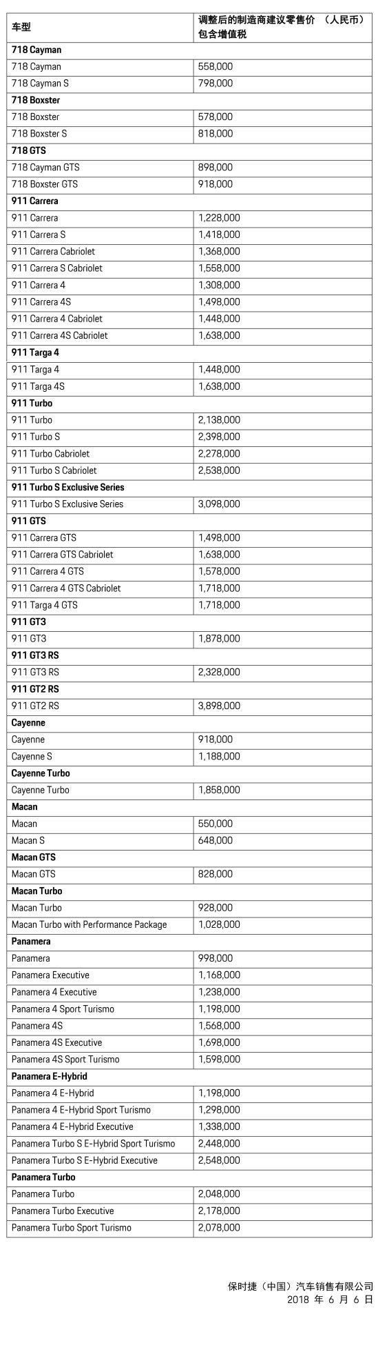 以下為保時(shí)捷官方調(diào)價(jià)聲明: