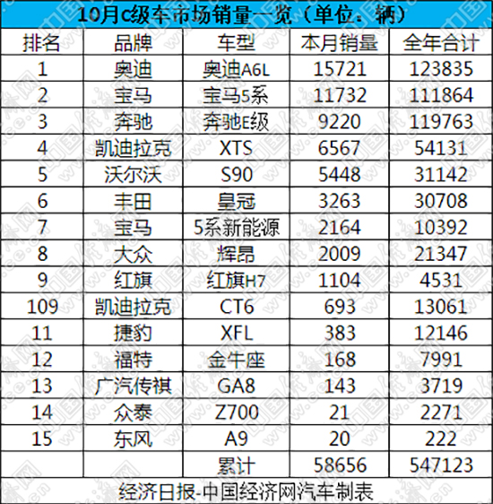 統(tǒng)治C級(jí)車(chē)市場(chǎng)近30年的奧迪A6L,即便處在產(chǎn)品生命期末端,依舊不減“老大”的霸氣。數(shù)據(jù)顯示,A6L在10月份的銷(xiāo)量達(dá)15721輛,勇奪單月銷(xiāo)量冠軍;前10個(gè)月的累計(jì)銷(xiāo)量為123835輛,趕超奔馳E級(jí),重新收獲C級(jí)車(chē)市場(chǎng)的銷(xiāo)量冠軍。