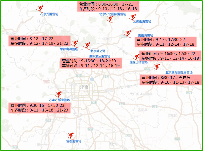隨著冬奧會臨近,冰雪運(yùn)動也在逐年升溫。北京周邊的南山、軍都山、漁陽等滑雪場不管在周末假期還是冬季的其他假期都會吸引大量愛好者。滑雪者多數(shù)會選擇駕車前往,滑雪場周邊道路車流量較大,特別是近城區(qū)的幾個滑雪場熱度較高,9時至10時、12至14時、16至18時三個時段,周邊道路的車輛最多,交通壓力最大。