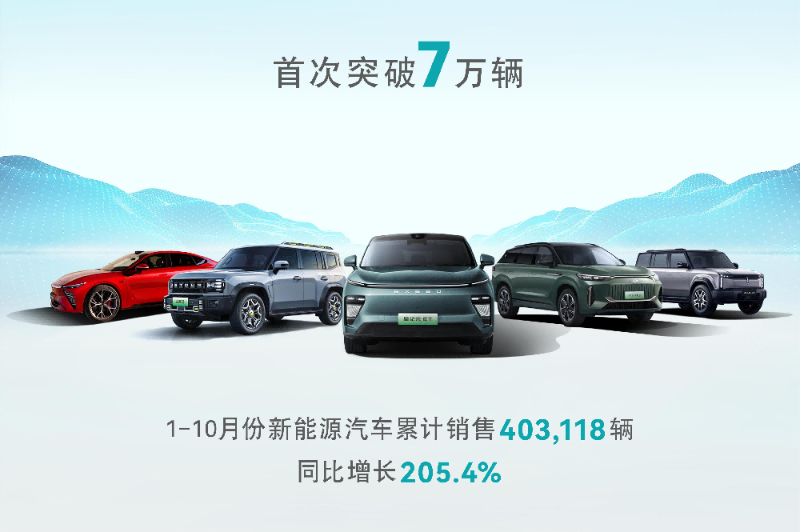 奇瑞控股集團(tuán)發(fā)布10月銷量快報,集團(tuán)總銷量272,155輛,同比增長35.9%,其中新能源銷量71,330輛,同比增長342.1%,首次突破7萬輛大關(guān),創(chuàng)造單月新能源銷量歷史新高。