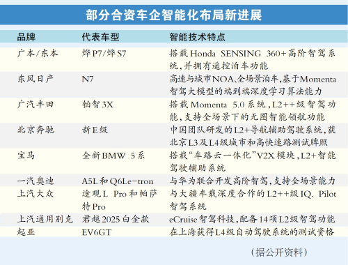 在業(yè)內(nèi)人士看來(lái),這并非偶然。從時(shí)間軸上看,在經(jīng)歷了多年“上車(chē)?yán)щy”、研發(fā)成本高等轉(zhuǎn)型陣痛后,合資車(chē)企通過(guò)加快步伐,與本土科技企業(yè)合作,開(kāi)始在高階智能駕駛領(lǐng)域迎頭趕上,縮小與自主品牌的差距?!皬碾妱?dòng)車(chē)到燃油車(chē),從智駕系統(tǒng)到‘大彩電’,合資車(chē)企的智電轉(zhuǎn)型正在提速?!?/p>