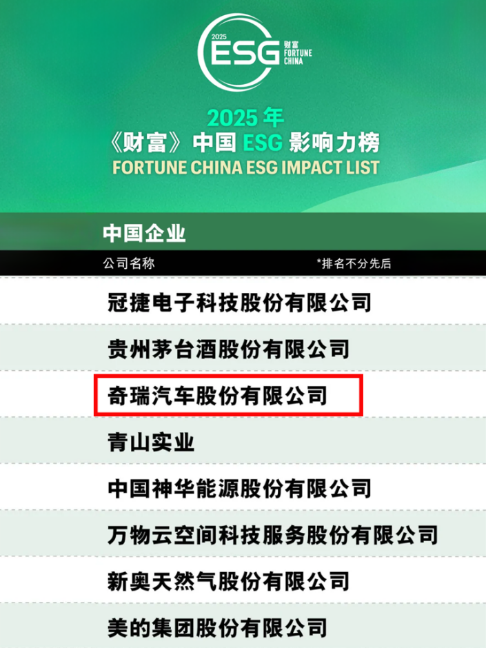 技術創(chuàng)新驅動奇瑞回歸價值本源,以全球企業(yè)公民身份踐行ESG理念。無論是奇瑞帶來的全球首款熱效率突破48.1%的鯤鵬天擎混動發(fā)動機,還是密集上市的新能源汽車產(chǎn)品;無論是奇瑞向聯(lián)合國兒童基金會捐款開展國際兒童教育項目、與世界自然保護聯(lián)盟(IUCN)合作開展“珍愛自然”奇瑞×IUCN全球項目,又或是著眼全球最迫切的減碳議題,率先在全價值鏈推行降碳管理,奇瑞一直積極踐行ESG理念,關于ESG的積極實踐和創(chuàng)新成果也贏得了社會廣泛認可。在5月《財富》發(fā)布的“2025年中國ESG影響力榜”中,奇瑞汽車憑借自身ESG領域的卓越表現(xiàn)入榜,這也是奇瑞汽車自2024年以來,第二次入選該榜單。