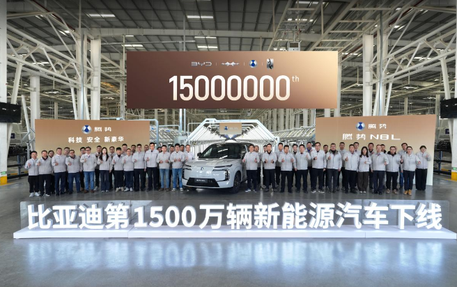 2025年12月18日,比亞迪第1500萬輛新能源汽車下線儀式在濟南工廠順利舉行,“大六座安全豪華SUV”騰勢N8L成為第1500萬輛下線車型,這也是騰勢N8L的第15000輛下線。比亞迪達成這一里程碑,用了整整17年,從1000萬到1500萬,只用了短短的13個月,再次刷新中國新能源汽車的“加速度”,也標(biāo)志著中國汽車工業(yè)正式邁入全球引領(lǐng)新階段。