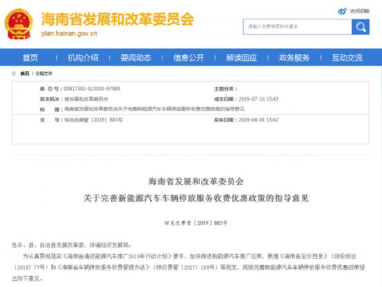 8月1日,海南省發(fā)展和改革委員會發(fā)布《關(guān)于完善新能源汽車車輛停放服務(wù)收費(fèi)優(yōu)惠政策的指導(dǎo)意見》(以下簡稱《意見》),提出一系列指向清晰的指導(dǎo)意見。據(jù)此,海南年內(nèi)將出臺新能源汽車車輛停放服務(wù)收費(fèi)優(yōu)惠政策,不僅比燃油汽車停車收費(fèi)優(yōu)惠,而且新能源汽車在公共區(qū)域停車還將免費(fèi)。