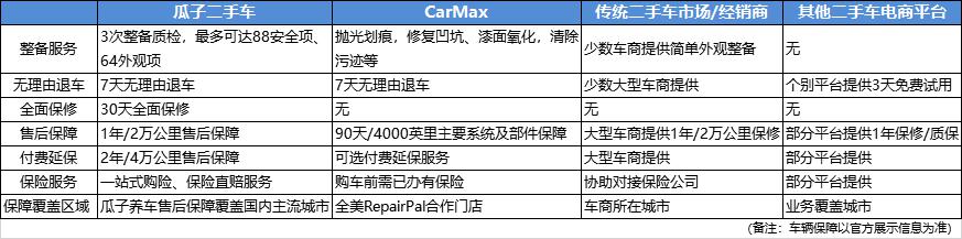 (主流二手車平臺售后保障對比)