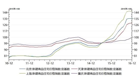重慶近兩年的房價(jià)漲幅明顯低于另外3個(gè)直轄市。數(shù)據(jù)來源:Wind資訊