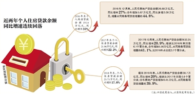 2018年全年房地產(chǎn)貸款增加6.45萬(wàn)億元,占同期各項(xiàng)貸款增量的39.9%,比2017年占比低1.2個(gè)百分點(diǎn)