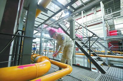 昨天上午,在北京熱力集團豐臺分公司馬家堡供熱服務中心西馬服務站鍋爐車間內,鍋爐廠家正在對5臺供熱鍋爐進行正式供熱前的系統(tǒng)確認。本報記者 甘南攝