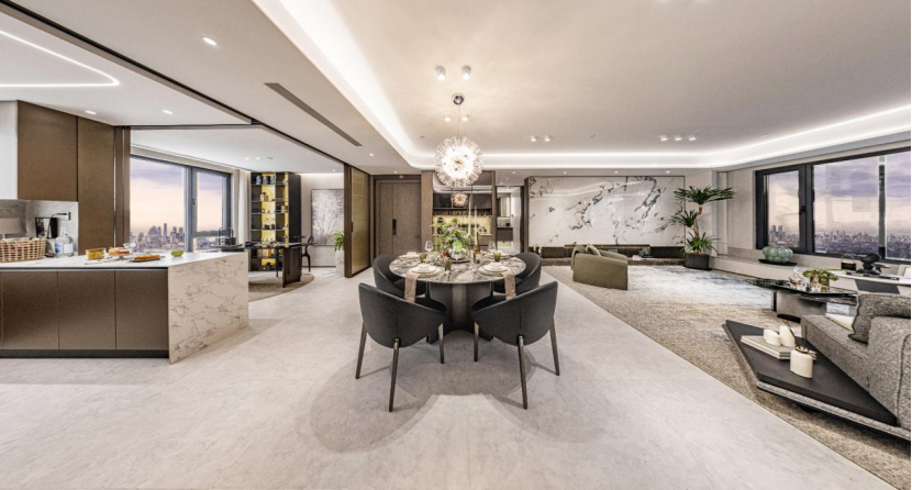 北熙區(qū)170平方米的四室兩廳兩衛(wèi)戶型則采用了現(xiàn)代簡約的設(shè)計(jì)風(fēng)格,摒棄繁復(fù)裝飾,使用精選皮革、藝術(shù)玻璃、古銅不銹鋼等現(xiàn)代材質(zhì)匹配大尺度橫向空間,塑造質(zhì)感美學(xué)空間。整體格局規(guī)整,南向面寬達(dá)13.85米,且設(shè)計(jì)了通透、多變的客廳空間,既能與廚房聯(lián)通,也可與書房互動,可以是朋友們的歡聚場,也可以是靜享品茗、閱讀美好時(shí)光的生活場。主臥套房酒店式設(shè)計(jì),獨(dú)立衣帽間、獨(dú)立衛(wèi)浴,彰顯居者的居住尺度。