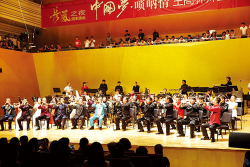圖為6月17日晚,在山西大劇院“《中國夢(mèng)·嗩吶情》王高林師生嗩吶音樂會(huì)”演出現(xiàn)場(chǎng)
