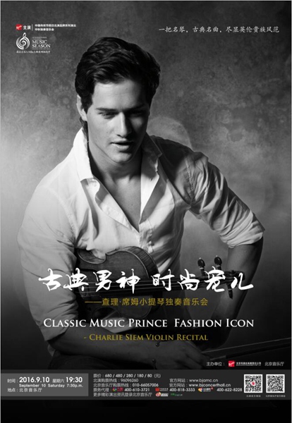 小提琴家查理·席姆9月10日來(lái)京開(kāi)演