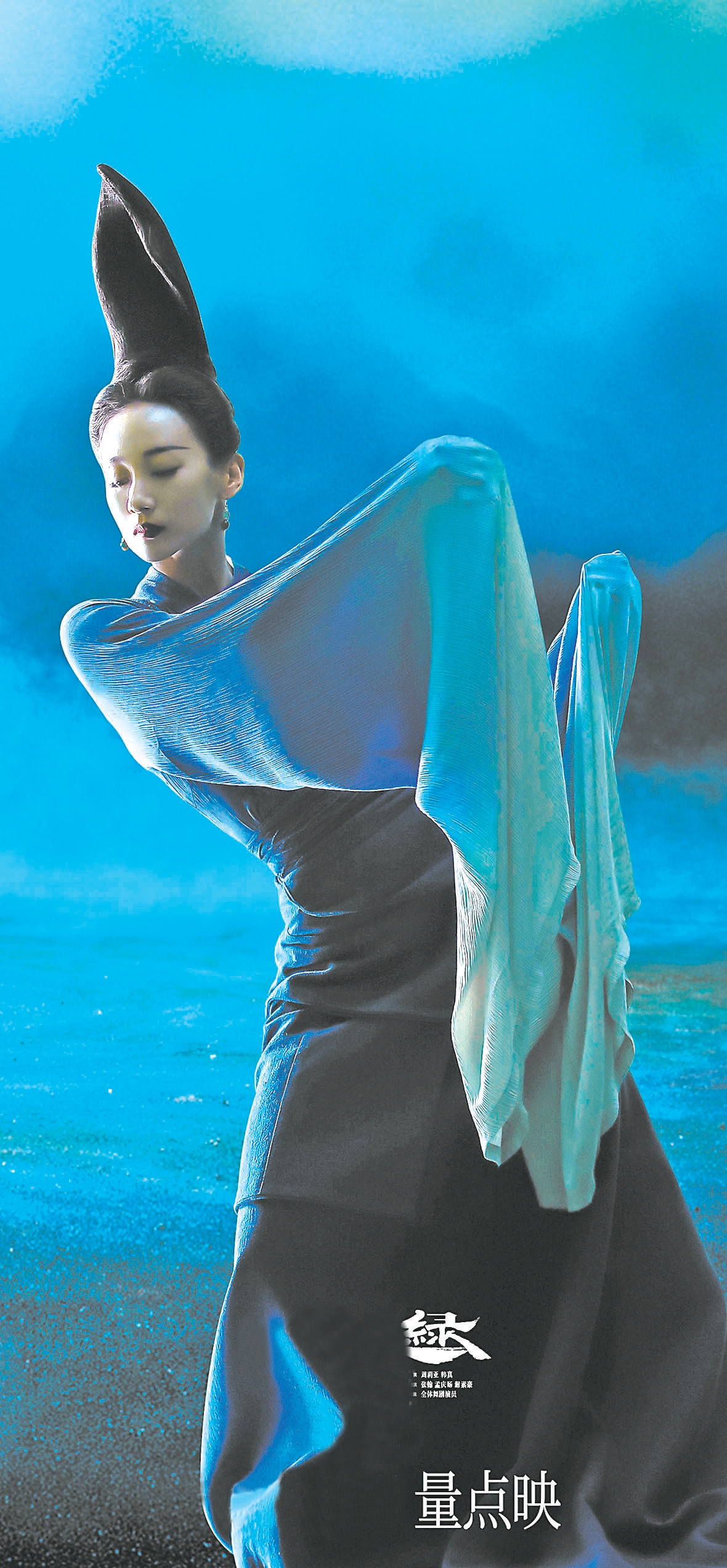 除此之外,《只此青綠》對舞蹈部分的呈現(xiàn)也十分精彩,用近景和特寫捕捉動作細節(jié),用全景拍攝群舞的整體畫面。故事中情緒激昂的部分,如“問篆”“尋石”“淬墨”三篇,利用傾斜、旋轉(zhuǎn)等特殊景別和運鏡來表達。寫意較多的部分,如“青綠”“入畫”兩篇,用特效輔助畫面,舞者的裙裾在地面上留下青綠墨痕,讓已在畫中靜待千年的色彩瞬間活了起來。此外,高速攝影進一步保留了舞者的姿態(tài)和動作細節(jié)。可以說,電影版《只此青綠》充分利用銀幕鏡頭的特性,幫助觀眾更好地欣賞、理解舞蹈,也讓整個故事有了更強的沉浸感。