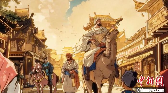 “漫畫中國”系列作品之一的《唐三彩駱駝載樂俑上的粟特人》片段畫面。(中國傳媒大學區(qū)域國別傳播研究院供圖)