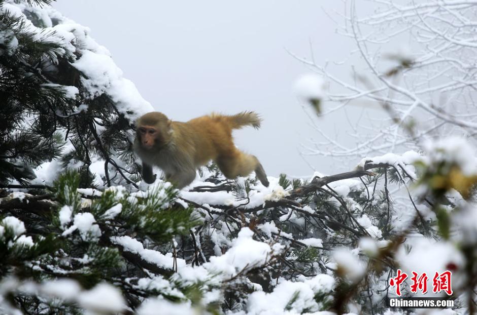 2月22日正值元宵佳節(jié),湖南張家界核心景區(qū)武陵源喜降春雪。在黃石寨景區(qū),成群的野生獼猴或在雪中追逐戲鬧,或在樹(shù)枝上攀爬跳躍,或蜷縮著身子賣(mài)萌,成為張家界武陵源的一道春季新景。吳勇兵 攝
