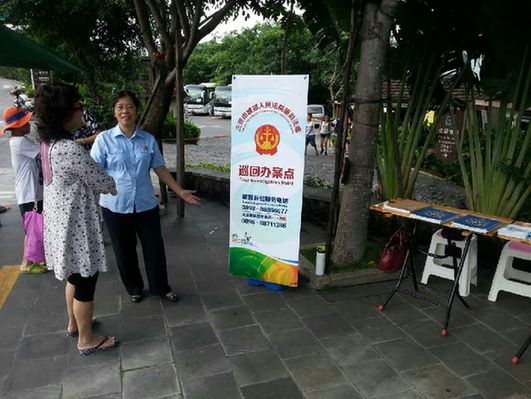 三亞城郊法院負責人介紹說,旅游巡回法庭進一步構建和完善與工商、旅游等部門之間的聯(lián)動機制,以“景區(qū)有糾紛及時聯(lián)系”和“法庭定點定期值班”結(jié)合的方式,提供便民高效的司法服務。
