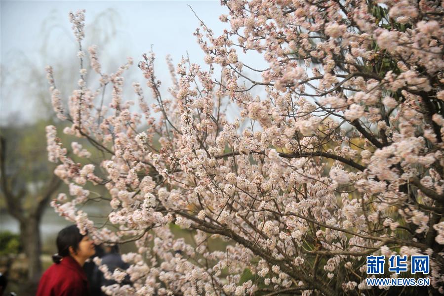 3月6日,游客在揚州瘦西湖賞花。隨著氣溫升高,江蘇揚州市瘦西湖景區(qū)楊柳吐綠,繁花似錦,吸引許多中外游客前來踏春賞花。 新華社發(fā)(孟德龍 攝)