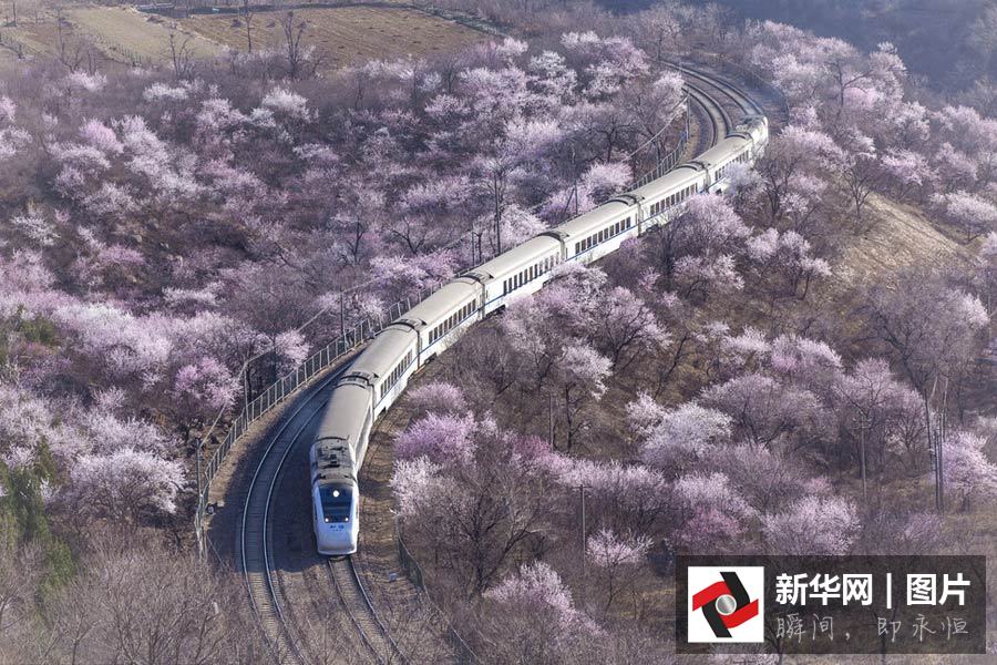 和諧號穿越居庸關花海 美到窒息