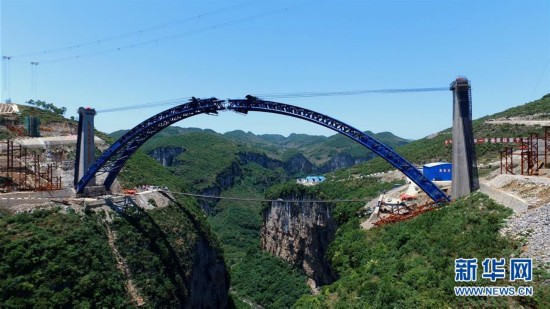 即將合龍的西溪河大橋(5月10日攝)。西溪河大橋位于貴州畢節(jié)地區(qū),是成都至貴陽高速鐵路的重難點(diǎn)控制性工程。正在建設(shè)中的成貴鐵路將經(jīng)過包括紅軍二渡赤水的決策地——云南威信縣在內(nèi)的四川、貴州、云南省境內(nèi)的多個(gè)縣市,革命老區(qū)威信將在不久的將來結(jié)束沒有鐵路的歷史,邁入高鐵時(shí)代。 “紅軍不怕遠(yuǎn)征難,萬水千山只等閑。”長征譜寫了一曲人類征服自然的凱歌,峽谷激流、雪山草地、物資匱乏、生命禁區(qū),這一切都不能阻擋紅軍前進(jìn)的步伐。80年過去,滄海桑田,紅軍長征走過的荒郊野嶺,如今樓宇林立,欣欣向榮;徒步翻越的大山、攻克的關(guān)隘、沼澤遍布的草地、泅渡的河流,修起了通暢快捷的公路和大橋……長征之路發(fā)生了翻天覆地的變化,昔日的艱難險(xiǎn)阻正漸漸變成康莊通途。新華社發(fā)(王會(huì)堂攝)
