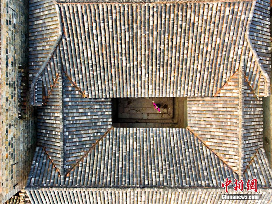 12月10日,航拍位于江西金溪縣有著600多年歷史的中國(guó)歷史文化名村、中國(guó)傳統(tǒng)村落竹橋古村,俯瞰全村,形似一柄巨扇。該村現(xiàn)保存有明代所建民居8幢,明代祠堂1幢,其余為清代建筑,青磚灰瓦,樸實(shí)素雅,為贛派建筑最典型的代表。村前溪水長(zhǎng)流,良田萬(wàn)頃,村后茂林修竹,鳥(niǎo)鳴樹(shù)幽,身歷其境,如入畫中。傅建斌 攝