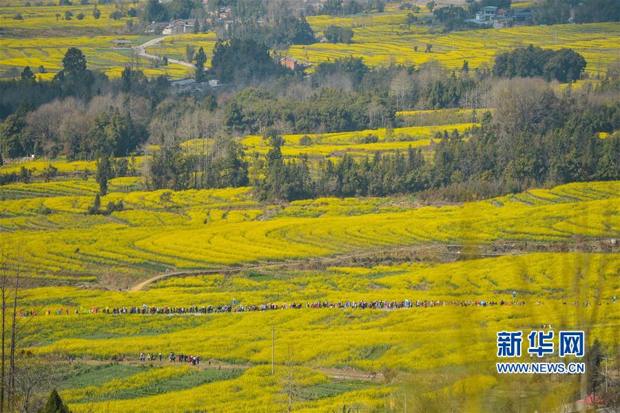 2月14日,村民從騰沖市界頭鎮(zhèn)的花海中經(jīng)過(guò)。當(dāng)日,第四屆騰沖高黎貢花海節(jié)在云南省騰沖市界頭鎮(zhèn)開(kāi)幕。此次花海節(jié)以“相約騰沖·情定花?!睘橹黝},將持續(xù)一個(gè)月的時(shí)間?;ê9?jié)期間還將舉行“美麗鄉(xiāng)村歡樂(lè)跑”“花海彩虹跑”“花海慢城山地自行車(chē)賽”等活動(dòng)。新華社記者 李琰 攝
