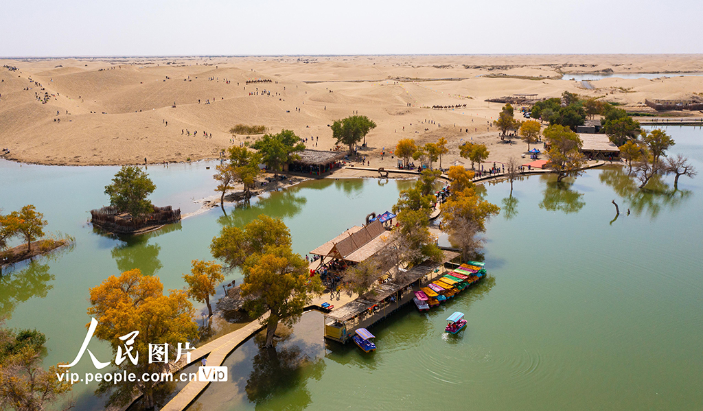 處于塔克拉瑪干沙漠邊緣的尉犁縣羅布人村寨是一個(gè)以民俗文化、探險(xiǎn)旅游為特色,集沙漠、胡楊、河流、湖泊于一體的旅游區(qū)。汪志鵬攝(人民圖片網(wǎng))