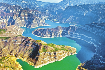 10月21日,在太原汾河二庫風(fēng)景區(qū),群山環(huán)繞于曲折迂回的水庫周圍,雄險(xiǎn)奇秀,水清柔碧綠。如畫山水間,獨(dú)特的峽谷風(fēng)光十分壯觀。