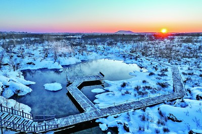 五大連池世界地質(zhì)公園位于黑龍江省黑河市,地處小興安嶺山地向松嫩平原的過渡地帶,境內(nèi)有14座火山和5個(gè)主要火山堰塞湖,擁有保存完整的火山地質(zhì)地貌,有“天然火山博物館”和“打開的火山教科書”等美譽(yù)。寒冬時(shí)節(jié),公園被積雪覆蓋,靜美而又壯觀。圖為1月29日拍攝的五大連池世界地質(zhì)公園溫泊景區(qū)冬日雪景。新華社記者 謝劍飛攝