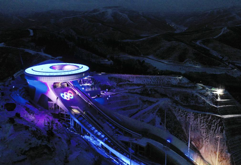 國家跳臺滑雪中心“雪如意”開啟燈光秀
