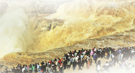 “壺口”的稱謂,最早見于《尚書·禹貢》中,如“既載壺口,治梁及岐”“壺口、雷首,至于太岳”,都與傳說中大禹治水的路線與策略有關(guān),壺口是大禹治水的始發(fā)之地。黃河壺口瀑布旅游區(qū)是國家5A級旅游景區(qū),是中國第二大瀑布,全世界最大的黃色瀑布。站在壺口觀景臺往上看,只見洶涌的黃河水簇?fù)碇群爸鴵涞窖矍?,其勢如千軍萬馬,漫山遍野般涌來,到了壺口,那一排排的巨浪在翻著水花馳騁飛奔中,突然墜入深坑,發(fā)出了震耳的嘶鳴聲,濺起了漫天水霧,再簇?fù)碇枷蜻h(yuǎn)方……而此時的你,只會感覺到大自然的偉岸和自己的渺小。