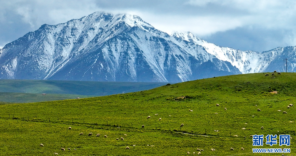 盛夏時節(jié),祁連山國家公園甘肅省張掖市肅南裕固族自治縣康樂鎮(zhèn)段,湛藍(lán)的天空飄著朵朵白云,映襯著巍峨的雪峰和碧綠的大地,牛羊在青草中浮動,像一把珍珠撒在了綠色的絨毛毯上,勾勒出一幅天然秀麗的生態(tài)畫卷。新華網(wǎng)發(fā)(王將 攝)