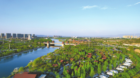 忻城北拓,云河?xùn)|流。云中河溫泉旅游度假區(qū),一水牽?jī)砂?,織錦繡于灘涂,展畫(huà)圖于平疇。