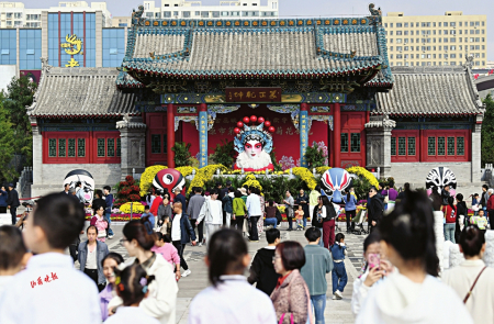 省城不少市民也選擇了“家門口的旅游”,國慶假期也是踏園賞菊的好時(shí)節(jié),太原市第三十四屆菊花展的主會(huì)場——雙塔公園,打造了7000平方米的賞花區(qū),10余萬株各類菊花競相開放。走進(jìn)雙塔公園,首先映入眼簾的是色彩斑斕的菊花展,公園內(nèi)精心布置的“祝福祖國”、“錦繡梨園”等主題花壇,仿佛將秋天的色彩搬到了這里,為豐富展覽內(nèi)容形式,公園同時(shí)舉辦迎國慶剪紙文創(chuàng)展、中華姓氏家訓(xùn)家風(fēng)展、古裝花船游等活動(dòng),為廣大游客帶來豐富的游覽體驗(yàn)。