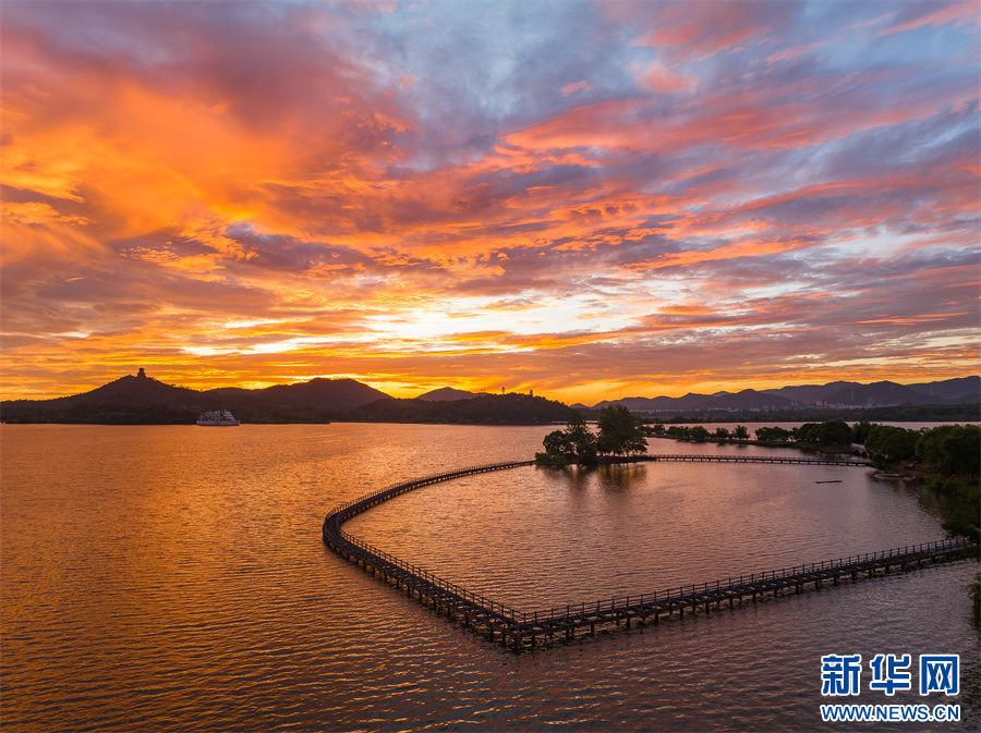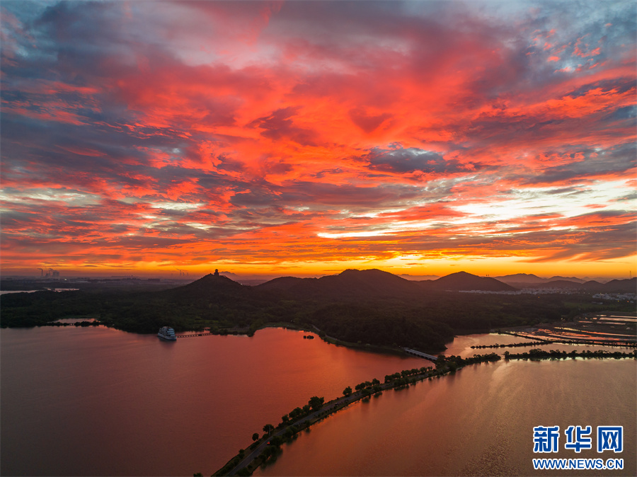近日,安徽省池州市平天湖上空出現(xiàn)絕美朝霞景觀。新華網(wǎng)發(fā)(程爽 攝)