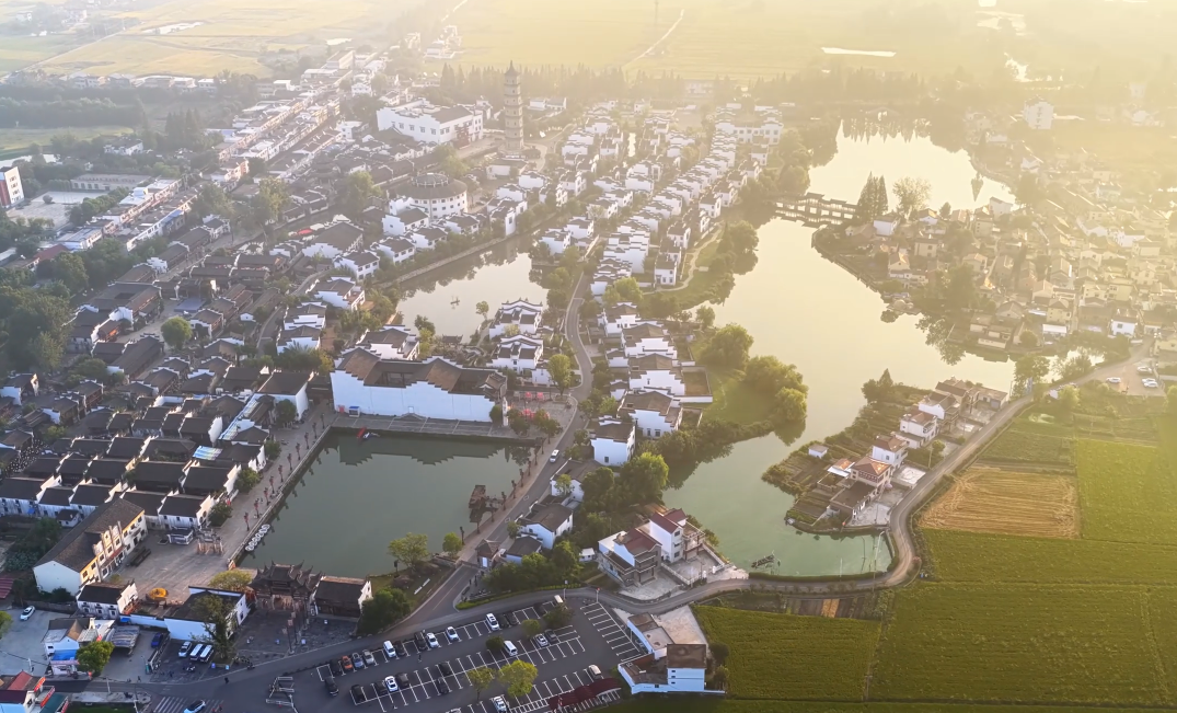 ?秋日清晨,位于安徽省銅陵市的犁橋水鎮(zhèn)在晨霧中蘇醒。放眼望去,白墻黛瓦的徽派民居錯落有致,與湖畔倒影、街旁的金色稻田共同構成一幅和諧的江南秋景圖。
