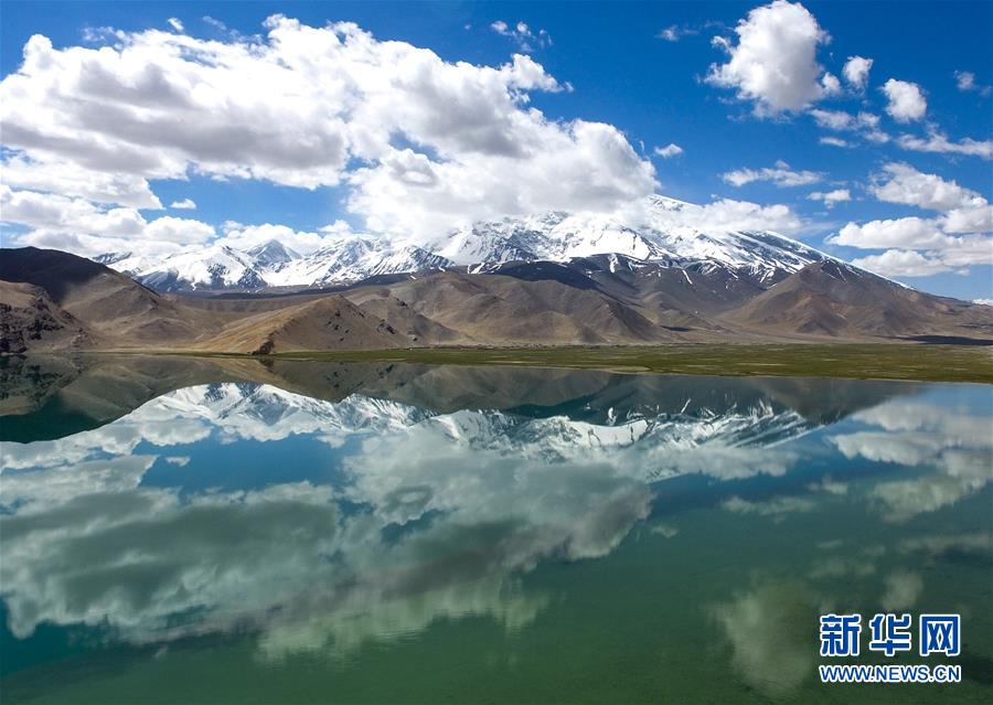 慕士塔格峰倒映在卡拉庫里湖里(6月7日攝)。6月的帕米爾高原風(fēng)光旖旎,吸引國內(nèi)外大量游客前來領(lǐng)略它的神韻。 新華社記者 趙戈 攝