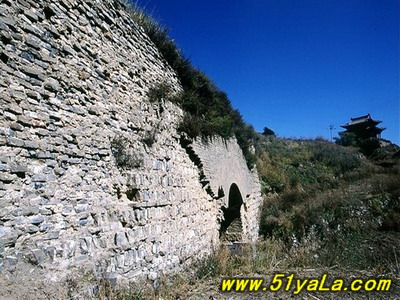 現(xiàn)存雁門關(guān),基本保持完整,整個(gè)關(guān)城雄偉壯觀,左右邊墻雉諜,烽墩壕塹俱備,誠(chéng)有“城隨山勢(shì)轉(zhuǎn),關(guān)并塞云齊”之威。雁門關(guān)西北,約10公里處有廣武城,分新、舊廣武城兩堡。舊廣武城,是一處長(zhǎng)方形古代城堡,10多米高的長(zhǎng)城,為條石基磚包砌。城堡除垛上女兒墻損壞外,其余保存較好。城頭上有石碑,是公元1725年所立。