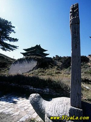 雄關(guān)雁門,居“天下九塞”之首(《呂氏春秋》)。從戰(zhàn)國(guó)時(shí)期的趙武靈王起,歷代都把此地看作戰(zhàn)略要地。趙置雁門郡,此后多以雁門為郡、道、縣建制戍守。雁門關(guān)之稱,始自唐初。因北方突厥崛起,屢有內(nèi)犯,唐駐軍于雁門山,于制高點(diǎn)鐵裹門設(shè)關(guān)城,戍卒防守?!短茣?shū)·地理志》描述這里“東西山巖峭拔,中有路,盤旋崎嶇,絕頂置關(guān),謂立西徑關(guān),亦曰雁門關(guān)?!焙蠼?jīng)五代十國(guó)、宋、遼、金、元約四百余載。元朝設(shè)千戶所,關(guān)城被毀。明代吉安侯陸享于洪武七年(1374)自監(jiān)民工筑新關(guān)于舊關(guān)東北十里處的要道。南距代城縣四十余里,北鄰廣武古城二十一里,地勢(shì)更為險(xiǎn)要。明末清初的著名學(xué)者顧炎武曾親臨此地。他寫道“雁門重關(guān),山巒在演,霞飛云舉,兩山對(duì)峙,其形如門,而飛雁出于其間?!痹撽P(guān)城,周長(zhǎng)二里,墻高二丈,石座磚身,雉堞為齒,洞口三重,曰東門、西門、小北門。東門上筑樓臺(tái),曰雁樓,門額嵌石匾一方,橫書(shū)“天險(xiǎn)”(即“天險(xiǎn)”)。西門上筑有楊六郎廟,門額嵌石匾一方,橫書(shū)“地利”(即“地利”)。小北門未設(shè)頂樓,但磚石結(jié)構(gòu),格外雄固。門額石匾橫刻:“雁門關(guān)”三字。洞門兩側(cè)鑲嵌磚鐫楷書(shū)檢聯(lián):“三關(guān)沖要無(wú)雙地,丸塞尊崇第一關(guān)?!睎|門外北側(cè)建有“靖邊寺”祀戰(zhàn)國(guó)時(shí)代的軍事家趙將李牧。西門外右側(cè)建有關(guān)帝廟。關(guān)城正北置有駐軍營(yíng)房,東南設(shè)有練兵教場(chǎng)。整個(gè)關(guān)城建筑,虎踞龍盤,雄偉壯觀。明清以后,關(guān)城雖屢有重建。但隨著我多民族統(tǒng)一國(guó)家疆域的逐步形成,內(nèi)長(zhǎng)城作為“內(nèi)邊”的作用已經(jīng)失去,所屬的雁門雄關(guān)也隨之荒廢?,F(xiàn)在的關(guān)城僅在東門、西門、小北門三個(gè)門洞和靖邊寺前的一對(duì)石獅,一副石旗桿,明鐫李牧碑石一塊,以及寺后的數(shù)株青松。