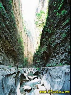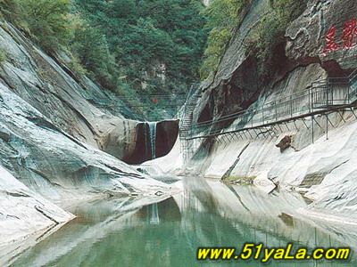 五指峽中的黑龍?zhí)端浅G宄?,終年流淌不息,在這個還有一個很有趣的說法,據(jù)說每到大旱的時刻人們就到這幾來求雨,但是求雨的人一定要是屬龍和蛇的,因為守護著黑龍?zhí)兜氖且粭l黑龍。清澈的山澗為來到這里的人們帶來了快樂。游人可以泛舟水上,進行皮筏漂流。