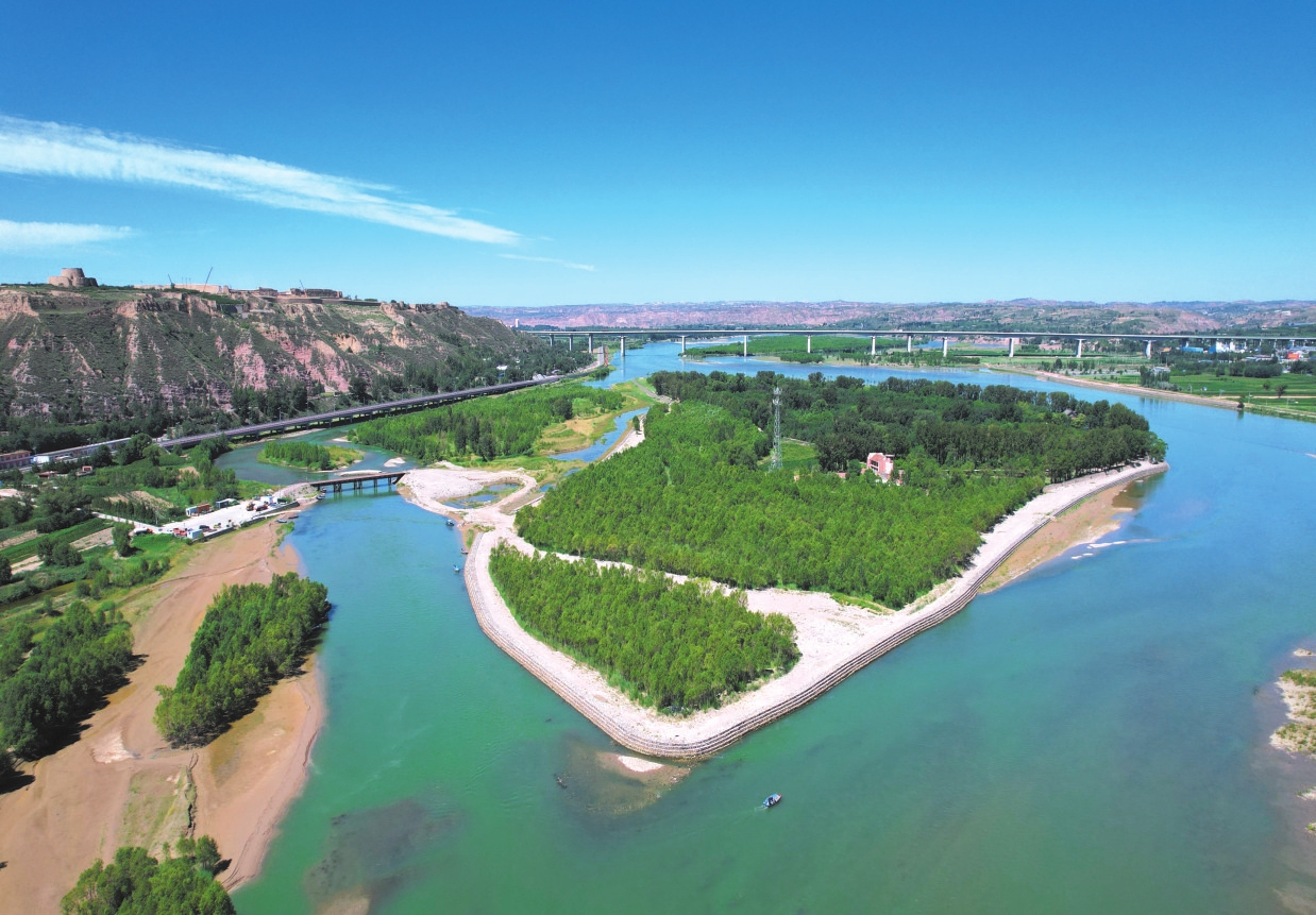 “一灘藏漢史,千年有回聲?!背跻?jiàn)娘娘灘,只見(jiàn)它四面環(huán)水,如一粒翡翠鑲嵌于濁流之中。人說(shuō)這里是塞上少有的綠洲,站在灘上,可聞晉、陜、蒙三省的雞鳴。面積僅0.16平方公里,卻承載著兩千多年的傳奇。