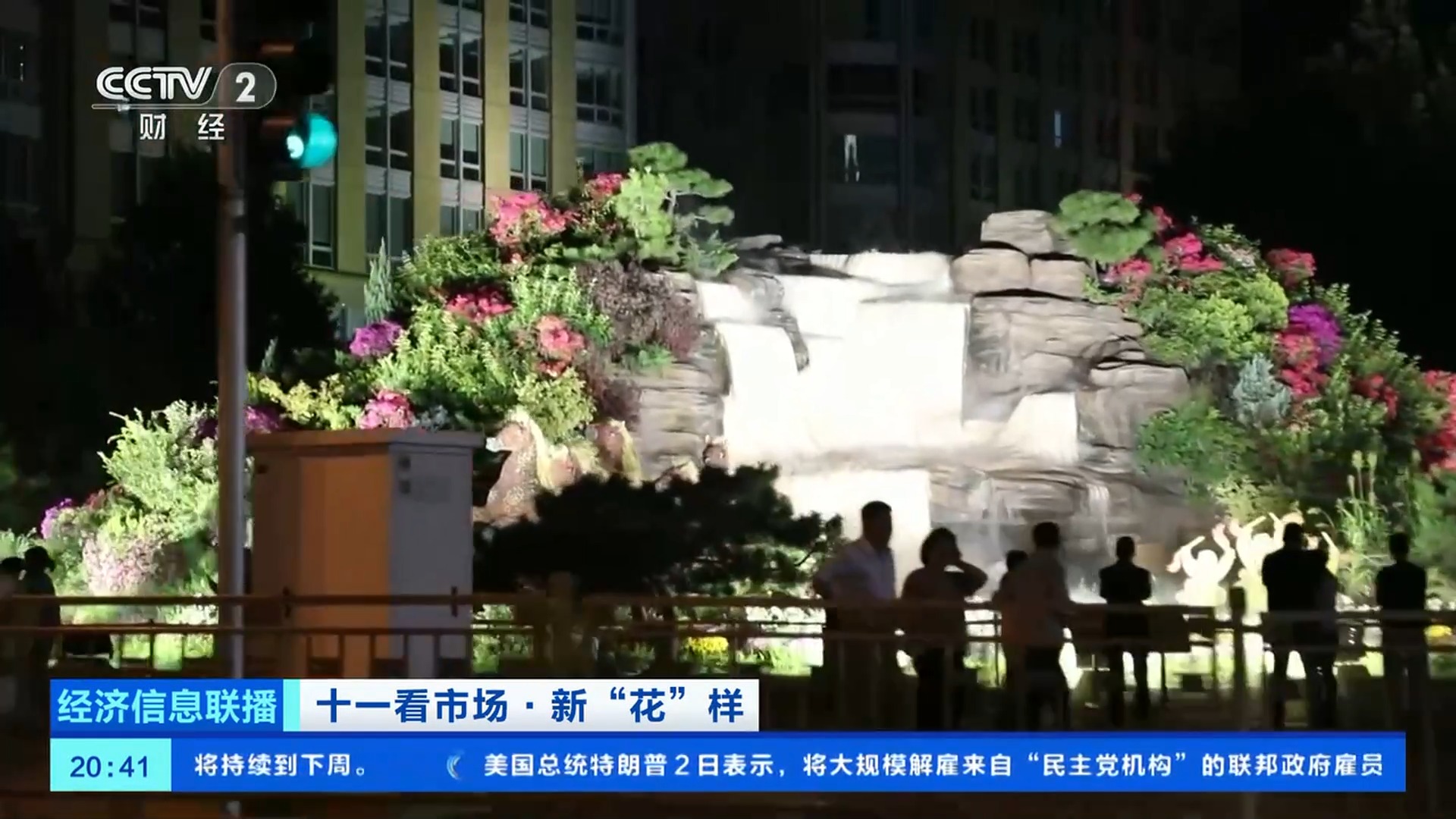 總臺(tái)央視記者 王聞聰:今年北京天安門(mén)廣場(chǎng)中心花壇的大花籃和長(zhǎng)安街沿線(xiàn)的10組立體花壇,都在國(guó)慶中秋假期增添了夜間照明設(shè)施,讓夜晚的花壇更加引人注目。北京東單東南角的“黃河贊歌”立體花壇,也被稱(chēng)為是“會(huì)唱歌的花壇”。在花壇上不僅能看到微觀的壺口瀑布、奔騰的駿馬、載歌載舞的人群,還有水霧、音樂(lè)等聲光電技術(shù),更加逼真地還原了黃河之水天上來(lái)的氣勢(shì)。晚上八點(diǎn),這里仍有大量游客前來(lái)拍照打卡。