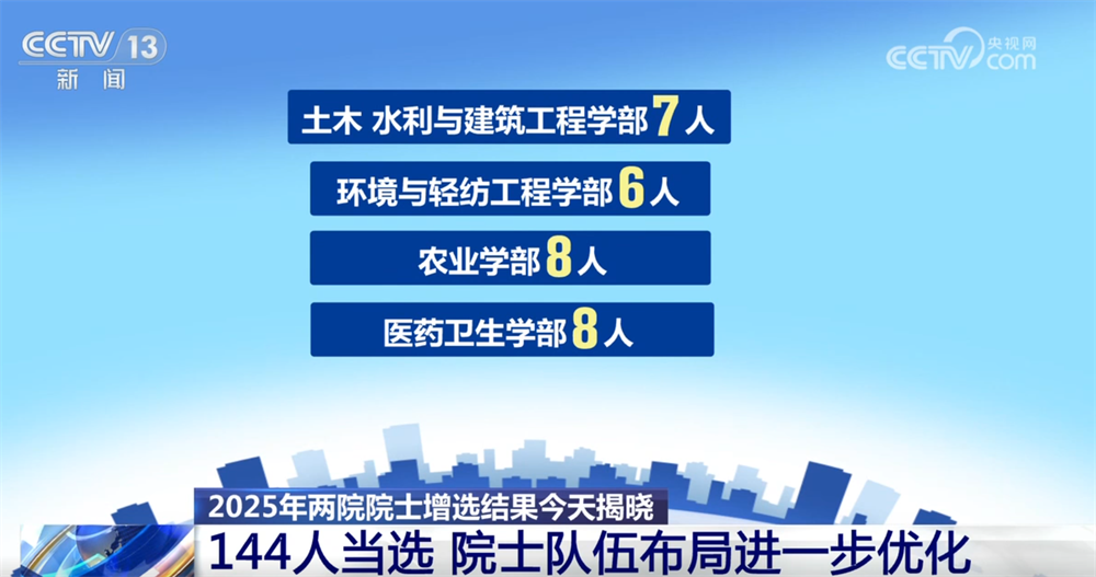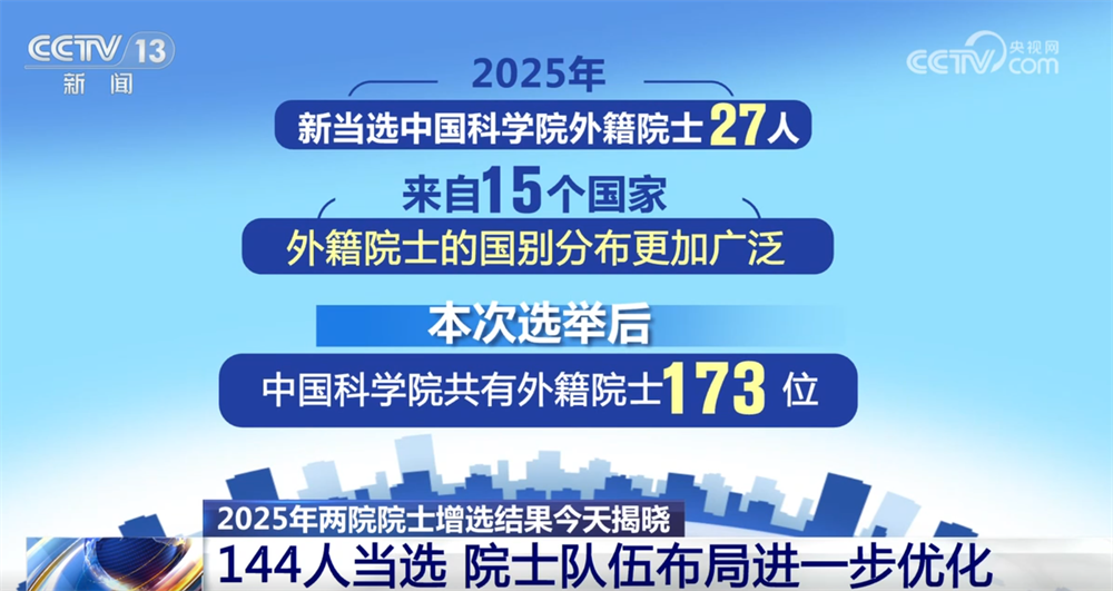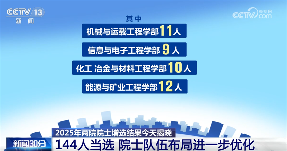 央視網(wǎng)消息:11月21日,2025年兩院院士增選結(jié)果正式揭曉,共有144人當(dāng)選,院士隊伍的年齡結(jié)構(gòu)、學(xué)科、地區(qū)和行業(yè)布局進一步優(yōu)化。