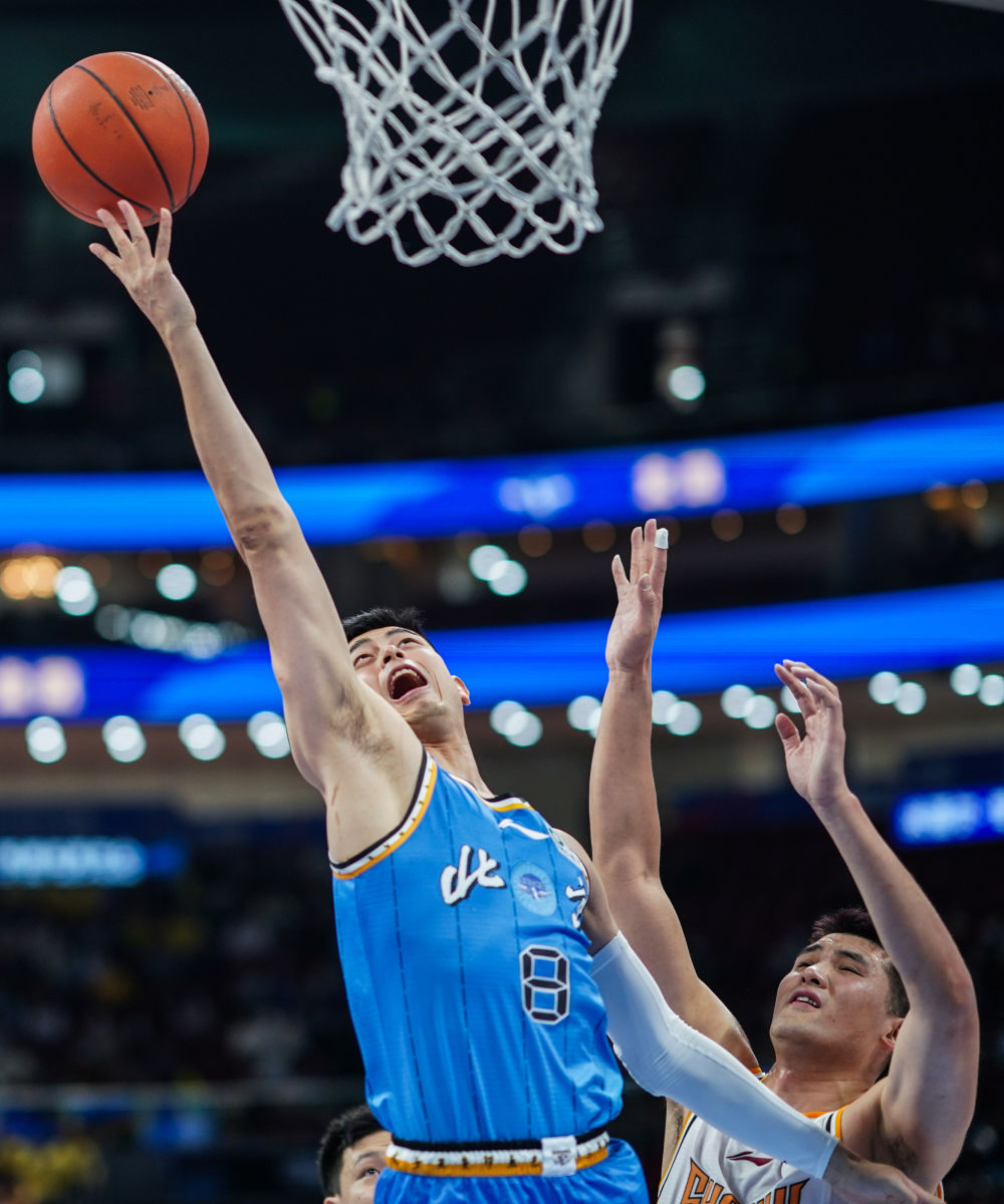 12月7日,北京隊球員方碩(左)在比賽中上籃。新華社記者 彭子洋 攝