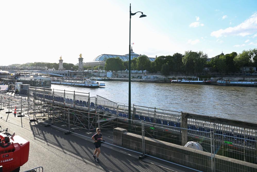 這是塞納河畔的開(kāi)幕式看臺(tái)(7月4日攝)。新華社記者 賀長(zhǎng)山 攝