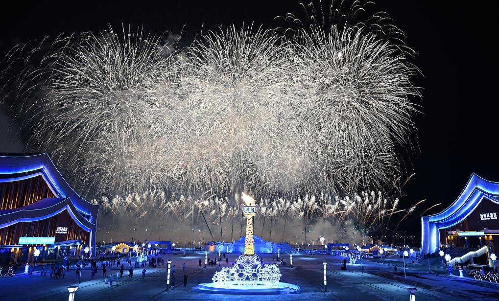 2月17日,第十四屆全國(guó)冬季運(yùn)動(dòng)會(huì)主火炬在開幕式上被點(diǎn)燃。新華社記者 連振 攝