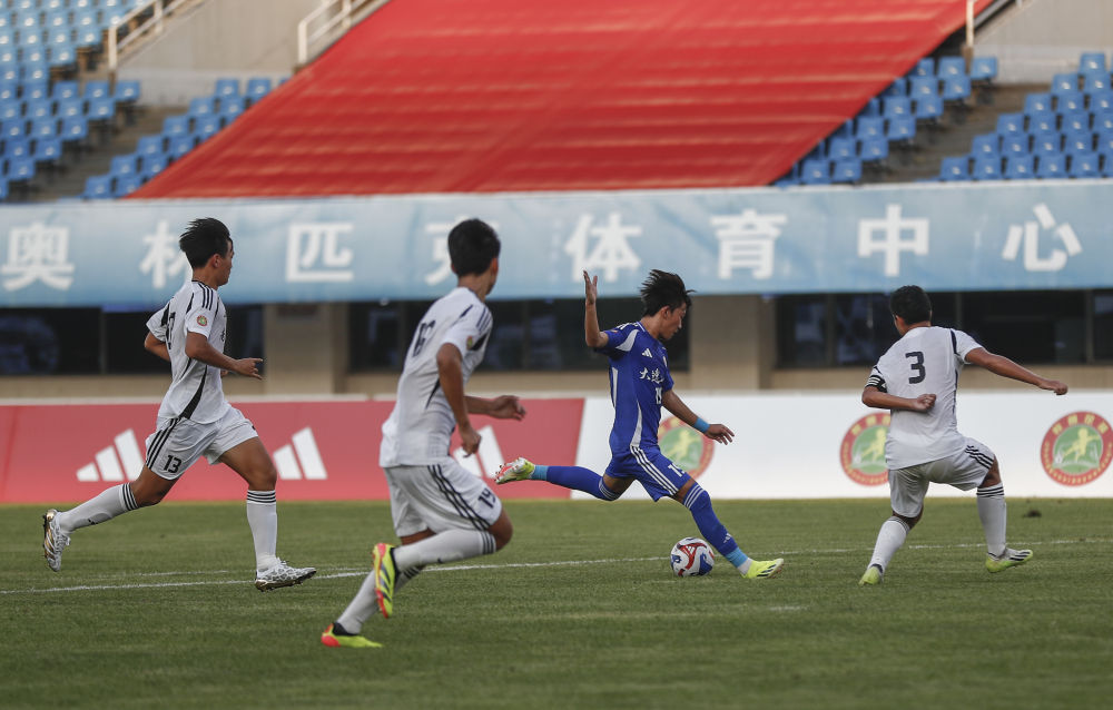 2024年8月30日,大連市第八中學(xué)隊(duì)球員張禹(右二)打入第一粒進(jìn)球。當(dāng)日,2023-2024全國(guó)青少年校園足球聯(lián)賽高中男子組決賽在北京奧體中心體育場(chǎng)舉行,大連市第八中學(xué)隊(duì)2比0戰(zhàn)勝南昌市第二中學(xué)隊(duì),奪得冠軍。新華社記者 胡星宇 攝