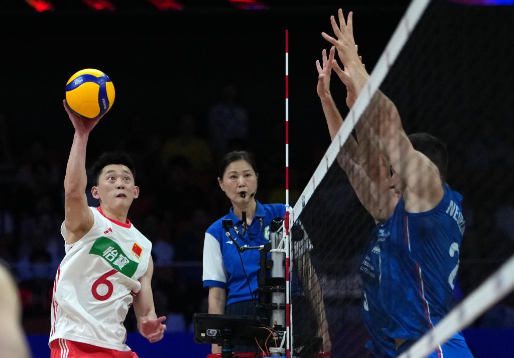 次局,塞爾維亞隊加強(qiáng)對中國隊4號位強(qiáng)攻的限制,一度握有4分領(lǐng)先優(yōu)勢。中國隊提升發(fā)球、攔防等細(xì)節(jié)的質(zhì)量,在局中階段將比分趕上,并通過俞元泰等人的三人攔網(wǎng)19:18反超比分。隨后,王濱發(fā)球滾網(wǎng)得分,雖然塞爾維亞隊連追兩分,但隊長伊沃維奇跳發(fā)出界,中國隊25:23再勝一局。