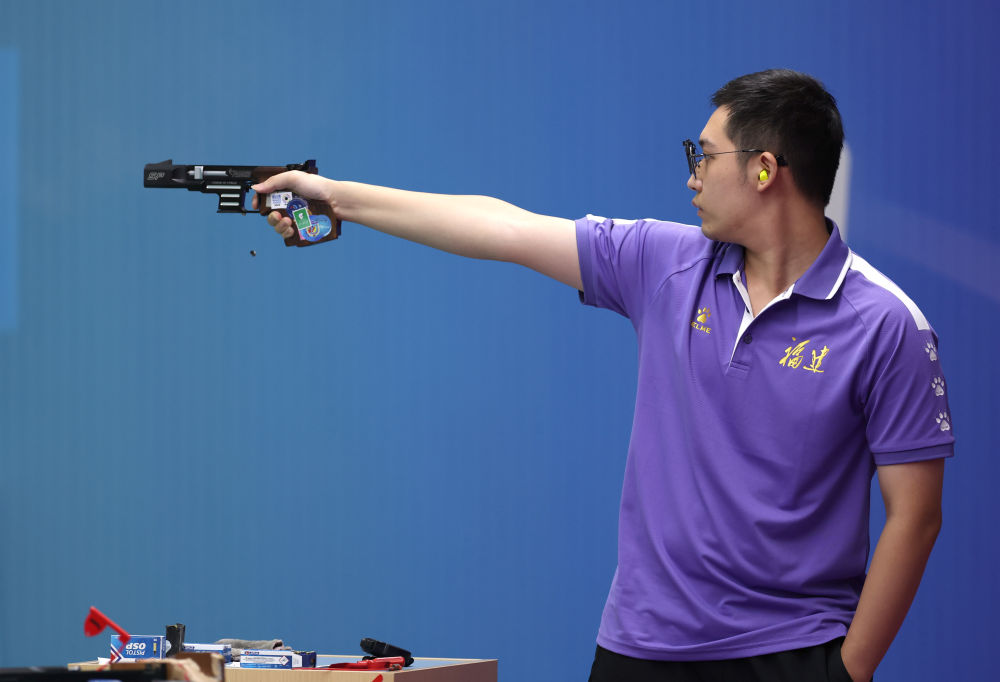 男子25米手槍速射比賽同樣“令人窒息”。上屆冠軍、奧運冠軍、山東隊名將李越宏未能晉級決賽。福建隊蘇連博凡以588環(huán)排名資格賽第一,陜西隊何世瑜位列第二。