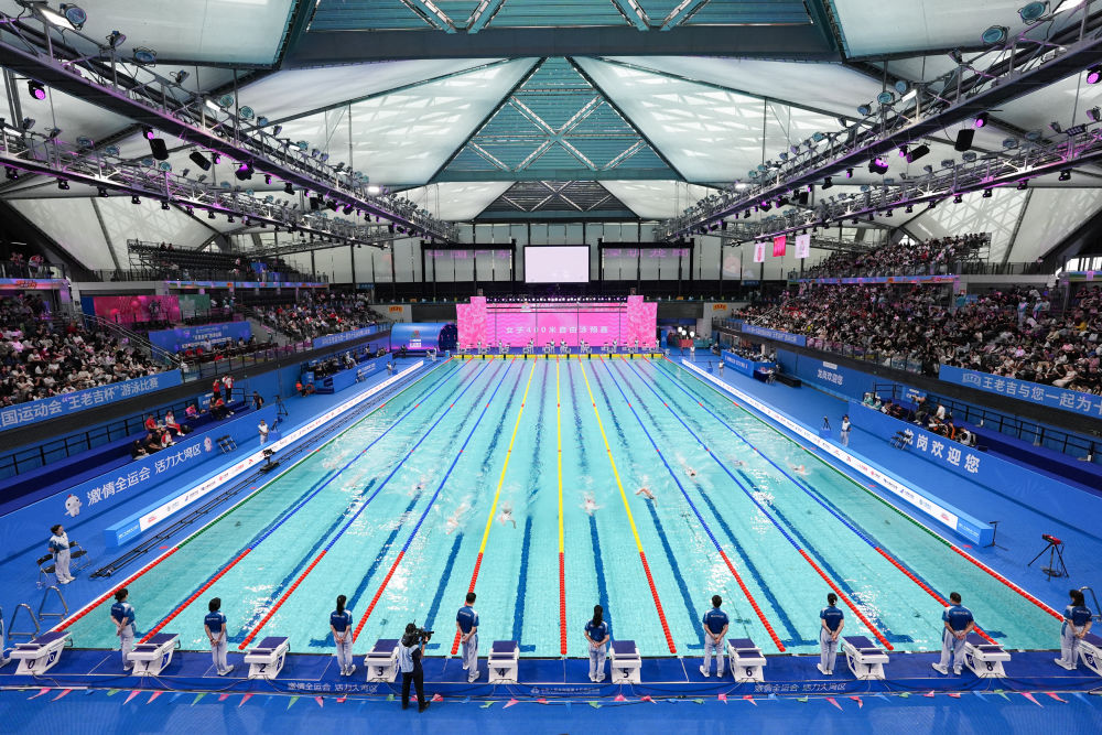11月10日,參賽選手在女子400米自由泳預(yù)賽中。當(dāng)日,第十五屆全國運(yùn)動會游泳項(xiàng)目在深圳拉開帷幕。新華社記者 夏一方 攝
