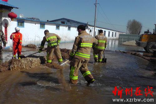 消防官兵到達(dá)現(xiàn)場(chǎng),經(jīng)現(xiàn)場(chǎng)詢問(wèn)和偵察,了解到:由于該村外農(nóng)田冬季澆水太多造成冰凍,近期氣溫回升使田地里凍結(jié)積水溶解,位于田地東北部一養(yǎng)牛場(chǎng)地勢(shì)低洼,冰解融水全部灌入養(yǎng)牛場(chǎng),情況十分危急,中隊(duì)指揮員迅速與養(yǎng)牛場(chǎng)負(fù)責(zé)人聯(lián)系村民鏟車進(jìn)行填堵,同時(shí)命令中隊(duì)?wèi)?zhàn)斗員利用鐵鍬進(jìn)行堵截,在經(jīng)過(guò)大約20分鐘的迅速搶救,最終排除險(xiǎn)情,幫村民挽回了巨大的經(jīng)濟(jì)損失。最后在與養(yǎng)牛場(chǎng)負(fù)責(zé)人交接好手續(xù)確定無(wú)險(xiǎn)情后,中隊(duì)全體指戰(zhàn)員收整器材返回中隊(duì),特勤中隊(duì)官兵快速處置,不怕苦、不怕累的精神贏得了在場(chǎng)群眾的一致好評(píng)。(張志遠(yuǎn) 白耀周)