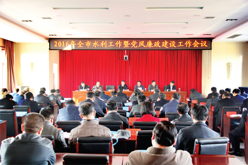 2016年全市水利工作暨黨風(fēng)廉政建設(shè)工作會議現(xiàn)場 “十三五”時期,是全面建成小康社會的決勝階段,是全面加快水利改革發(fā)展的關(guān)鍵階段,是全面貫徹落實(shí)新時期治水方略、構(gòu)建忻州水安全保障體系的攻堅(jiān)階段。 市委三屆七次全會描繪了我市未來5年發(fā)展的宏偉藍(lán)圖,把水利建設(shè)放在了“1661”發(fā)展戰(zhàn)略的重要位置,作為“十三五”脫貧攻堅(jiān)和全面小康的重大基礎(chǔ)設(shè)施建設(shè)工程予以部署和推動。我們要按照市委、市政府的要求,準(zhǔn)確把握國家、省、市水利工作的新形勢新任務(wù)新要求,堅(jiān)持“節(jié)水優(yōu)先、空間均衡、系統(tǒng)治理、兩手發(fā)力”的水利工作方針,全力抓好水安全、水生態(tài)建設(shè)六大工程,圍繞水利重點(diǎn)項(xiàng)目建設(shè),突出解決好“水源、水少、水臟、水遠(yuǎn)、水漏、水失”等重大水問題,強(qiáng)化水支撐,修復(fù)水生態(tài),為全市經(jīng)濟(jì)社會發(fā)展提供堅(jiān)強(qiáng)的水利基礎(chǔ)。 “十三五”全市水利發(fā)展的總體思路: 以中央和我省新時期治水發(fā)展戰(zhàn)略為指引,緊緊圍繞我市“1661”發(fā)展戰(zhàn)略,以最嚴(yán)格水資源管理為主線,以保障水安全為目標(biāo),按照“開源與節(jié)流并舉,利用與保護(hù)并重”的原則,大力推進(jìn)“資源水利、工程水利、民生水利、生態(tài)水利、法治水利”建設(shè),突出解決好制約忻州經(jīng)濟(jì)社會發(fā)展的6大水問題,初步形成“節(jié)約用水、水資源配置、水生態(tài)保護(hù)、防災(zāi)減災(zāi)、法治建設(shè)”5大體系,有效保障“水資源、水供給、水生態(tài)、水環(huán)境、水工程”5大安全,為全面建成小康社會提供更加堅(jiān)實(shí)的水安全保障。 主要目標(biāo): 全市用水總量控制在7.7億立方米以下;萬元工業(yè)增加值用水量在2015年的基礎(chǔ)上降低7%,全市重要水功能區(qū)水質(zhì)達(dá)標(biāo)率提高到73%;農(nóng)田灌溉水有效利用系數(shù)提高到0.55以上;鞏固提升148.13萬農(nóng)村人口的飲水安全質(zhì)量,農(nóng)村自來水普及率達(dá)到98%,集中供水率達(dá)到98%,水質(zhì)檢測率達(dá)到100%;全市農(nóng)田灌溉有效控制面積達(dá)到230萬畝,實(shí)現(xiàn)農(nóng)業(yè)人口人均1畝水澆地的目標(biāo);新增水土流失治理面積2500平方公里,水土流失累計治理度達(dá)到60.2%。 重點(diǎn)工作: 1、全面啟動以水源地、三河流域治理為重點(diǎn)的水資源與水生態(tài)修復(fù)保護(hù)工程建設(shè)。強(qiáng)化水資源管理和保護(hù),實(shí)施最嚴(yán)格水資源管理制度,限制開采地下水,確保全市水生態(tài)環(huán)境持續(xù)改善;加大重點(diǎn)泉域、重要水功能區(qū)的監(jiān)測力度及山洪災(zāi)害預(yù)警預(yù)報體系建設(shè),保護(hù)好黃河、汾河、滹沱河等主要河流;合理調(diào)整城鎮(zhèn)供水方式,啟動坪上引水工程供水及水泉灣水源地保護(hù),實(shí)施水源地調(diào)整、置換,提升中心城市居民用水質(zhì)量。統(tǒng)籌自然生態(tài)多要素,加快汾河、滹沱河、桑干河等重點(diǎn)流域的綜合治理與生態(tài)修復(fù);加強(qiáng)重點(diǎn)流域和區(qū)域水污染防治,推進(jìn)工業(yè)園區(qū)、工業(yè)集中區(qū)、工業(yè)企業(yè)污水深度處理,加快城鎮(zhèn)生活污水處理廠擴(kuò)容提質(zhì)和中水回用;堅(jiān)持保護(hù)優(yōu)先、自然恢復(fù)為主,統(tǒng)籌山水林田湖綜合治理,改善流域生態(tài)環(huán)境;提升水利風(fēng)景區(qū)建設(shè)規(guī)模和標(biāo)準(zhǔn)。 2、加快推進(jìn)以工業(yè)和城鎮(zhèn)供水為重點(diǎn)的骨干水源工程建設(shè)。啟動萬家寨引黃南干線滹沱河連通工程及山西大水網(wǎng)忻州縣域供水工程,完善忻定盆地供水體系,確保受水區(qū)各縣配套工程與大水網(wǎng)工程同步建成、同期發(fā)揮效益;在水資源開發(fā)利用程度較低河流、邊界河流、大水網(wǎng)骨干工程等區(qū)域,興建調(diào)蓄工程和新水源工程;在西部沿黃地區(qū)實(shí)施黃河水利用工程。通過加強(qiáng)水利基礎(chǔ)設(shè)施建設(shè),提高新型工業(yè)項(xiàng)目、優(yōu)質(zhì)特色農(nóng)產(chǎn)品基地和缺水地區(qū)的供水能力。 3、努力拓寬以中水、礦坑水、雨水集蓄為重點(diǎn)的補(bǔ)充水源工程建設(shè)。在主要城鎮(zhèn),推進(jìn)中水回用工程;在重點(diǎn)礦區(qū),推進(jìn)礦坑水集中利用工程;在山區(qū)農(nóng)村,大力發(fā)展雨水集蓄利用工程。 4、全力實(shí)施以農(nóng)村飲水安全、防洪保安為重點(diǎn)的民生水利工程建設(shè)。全力實(shí)施農(nóng)村飲水安全鞏固提升工程,切實(shí)保障居民飲水安全,推進(jìn)自來水全面普及;在主要干流和重要支流開展河道治理;加快病險水庫除險加固;全力實(shí)施抗旱應(yīng)急水源工程,增強(qiáng)抗旱應(yīng)急保障能力。 5、大力加強(qiáng)以農(nóng)業(yè)灌溉為重點(diǎn)的節(jié)水工程建設(shè)。加強(qiáng)大中型灌區(qū)續(xù)建配套與節(jié)水改造,加快小型農(nóng)田水利工程建設(shè)步伐,全面實(shí)施膜下滴灌等高效節(jié)水工程,繼續(xù)抓好中央財政小型農(nóng)田水利建設(shè)重點(diǎn)縣項(xiàng)目,有效改變農